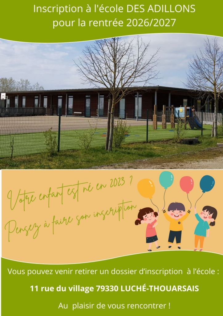 Votre enfant est né en 2023, venez dès maintenant l’inscrire pour sa rentré à l’école des Adillons